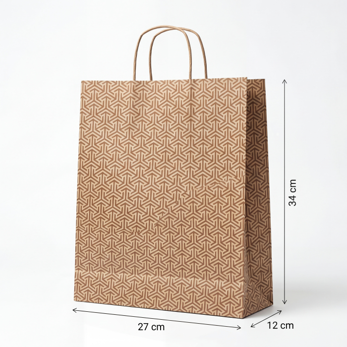 Sacoșele se fabrică exclusiv din hârtie KRAFT albă de diferite grosimi în funcție de necesitate. Cu cât grosimea hârtiei este mai mare cu atât sacosa va avea o ținută mai fermă și va fi mai rezistenta la greutate.
